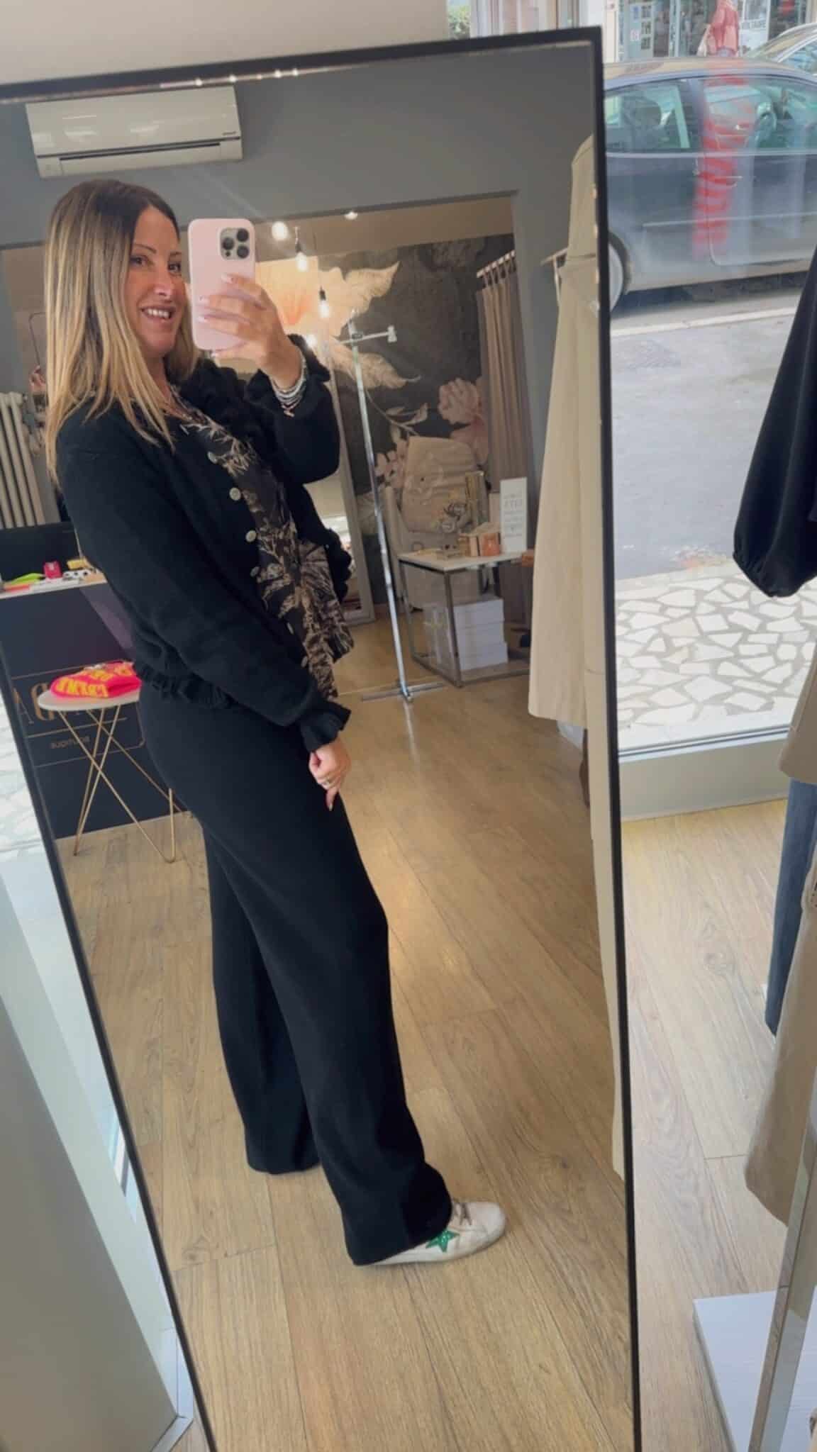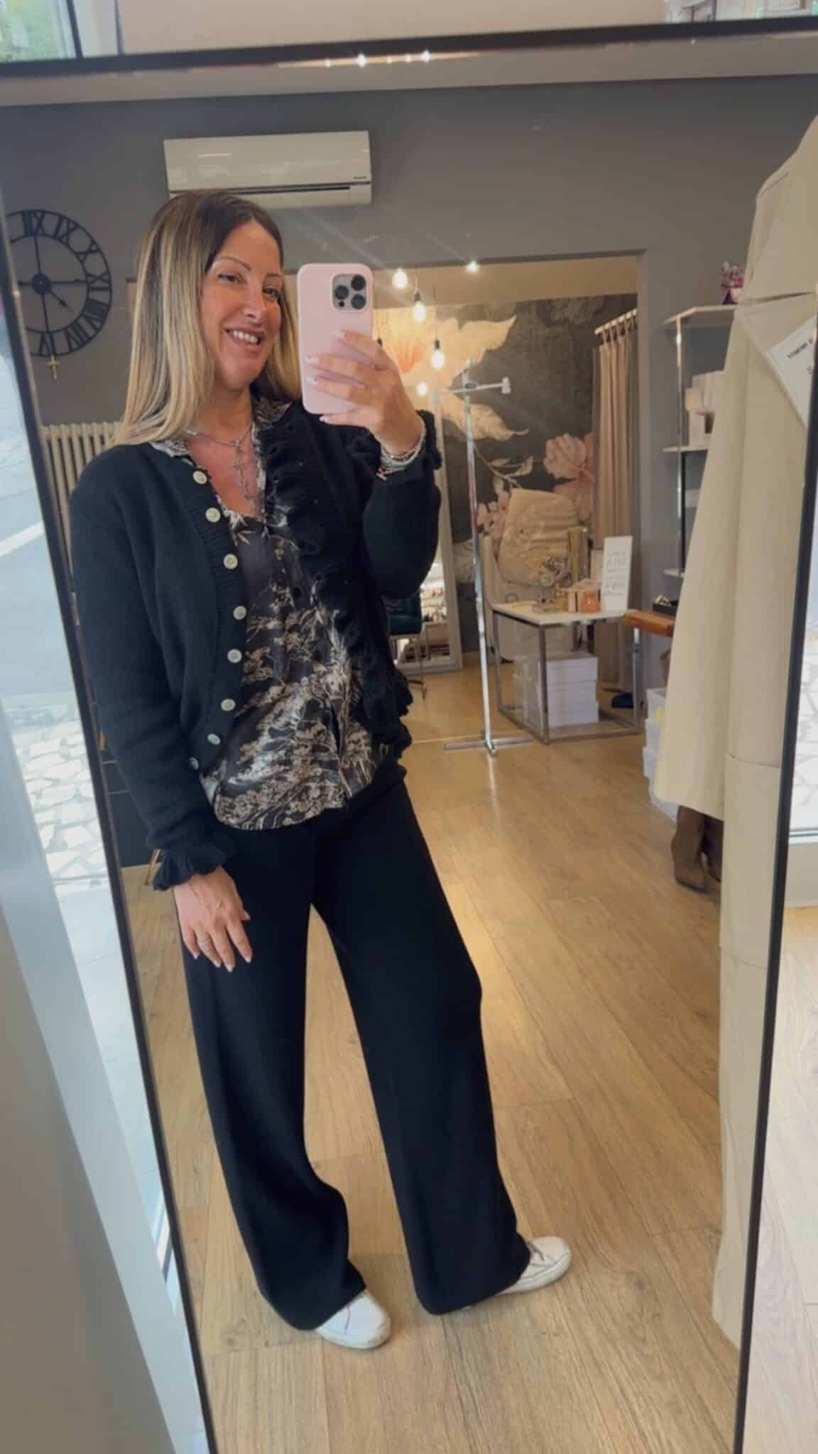 Maglia nera rouche bottoncini